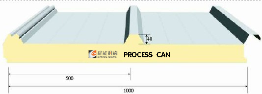 程能采用暗釘連接,與普通彩鋼泡沫屋面夾芯板相比。板面搭接設(shè)計緊密,有一個防水槽,有效地防止任何水的滲漏現(xiàn)象,所以防水性能極佳,同時避免了冷橋現(xiàn)象的發(fā)生。波峰高度40mm提高了屋面板的承載力。在保證建筑物的保溫效果的同時,有效地節(jié)約了建筑成本,屋面坡度最低可達5%。